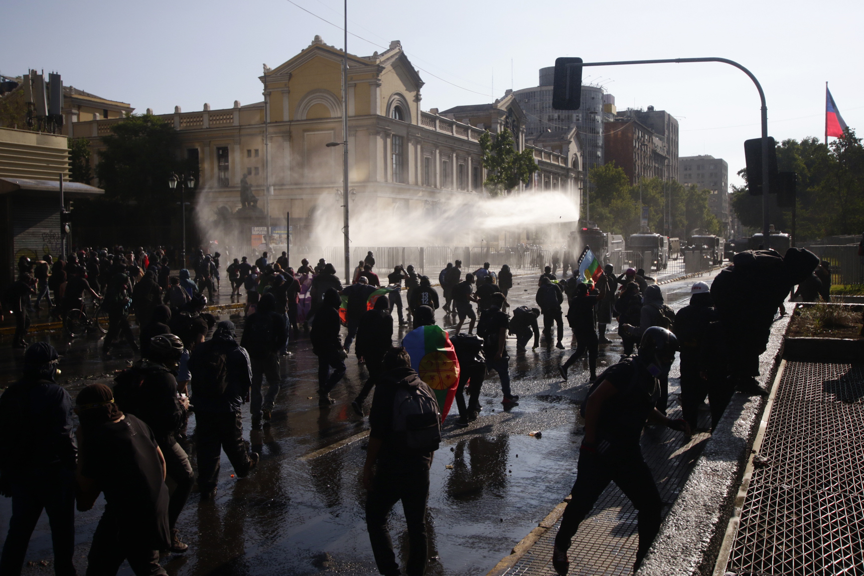 Carabineros utilizó carros lanza gases, bombas lacrimógenas y carros lanza aguas con el fin de dispersar a las personas que protestaban.