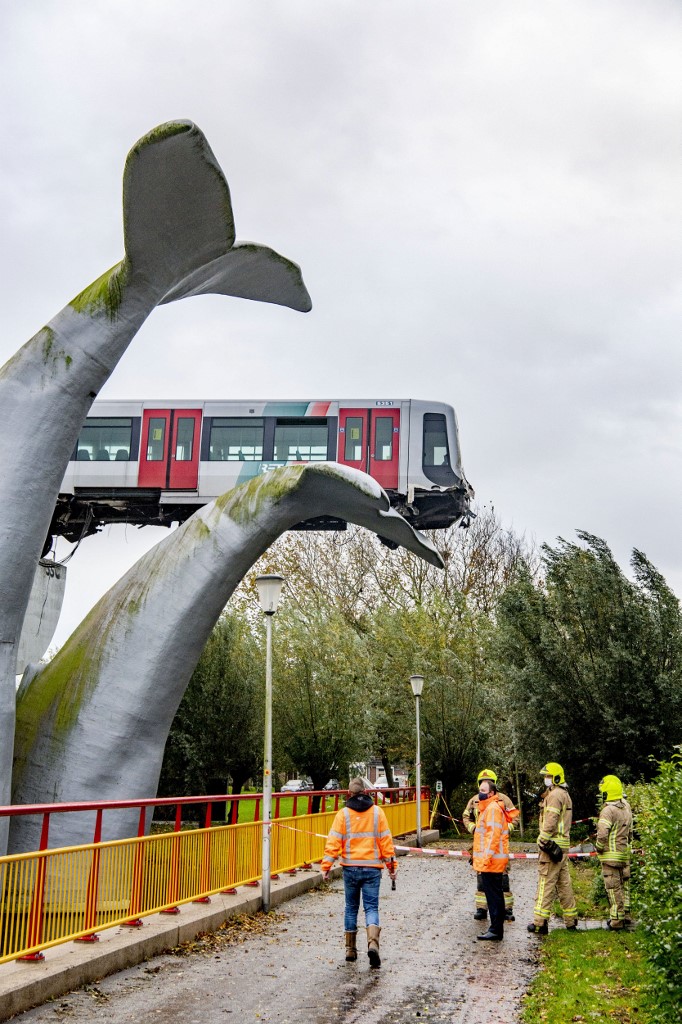 “El metro descarriló y acabó sobre el monumento llamado ‘Salvado por la cola de la ballena’. Literalmente, eso es lo que ocurrió”, aseguró Carly Gorter de la Autoridad regional de seguridad de Rijnmond.