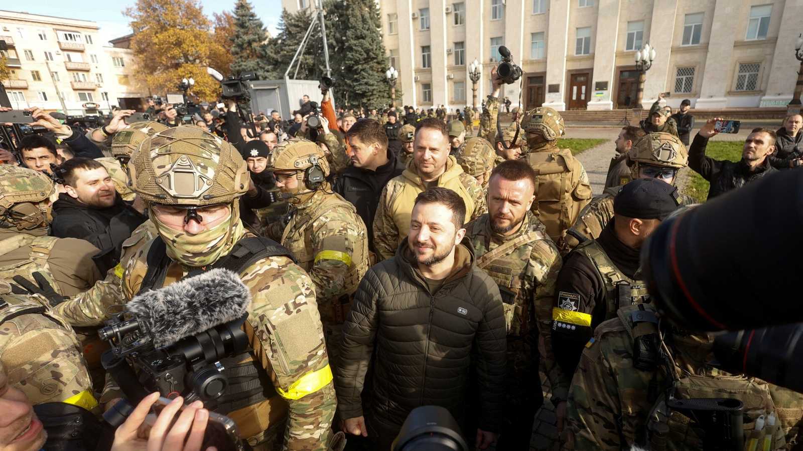 Zelenski visitó la ciudad liberada de Jerson e hizo ll...