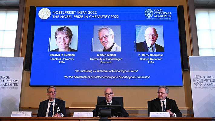 Carolyn Bertozzi (EEUU), Morten Meldal (Dinamarca) y K...