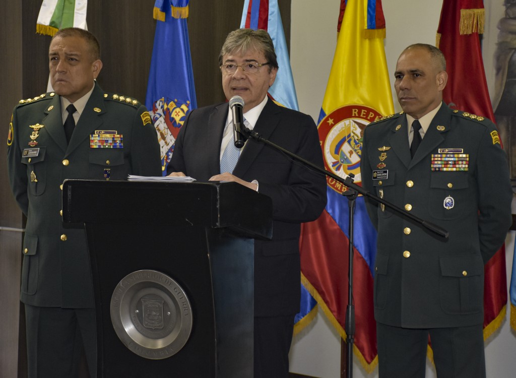 Acompañado de mandos policiales, el ministro colombia...