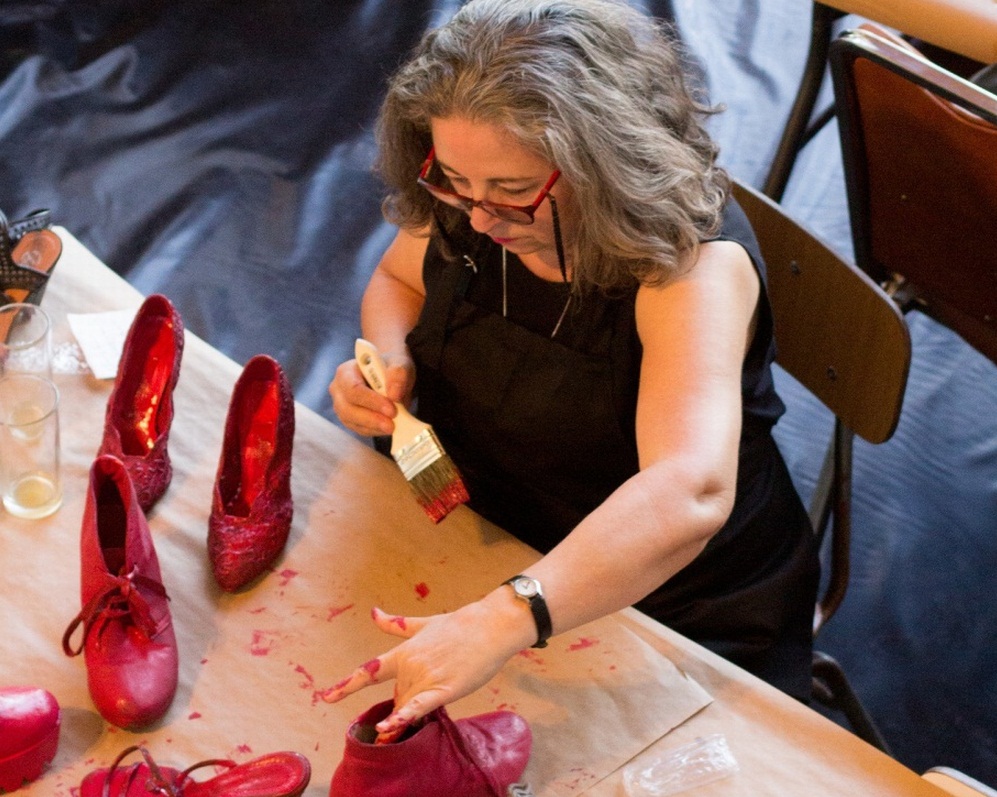 “Zapatos rojos” es su obra más celebrada, que a lo largo de diez años ha itinerado por diversas ciudades de Europa, México y Estados Unidos. Su primera versión fue montada en su ciudad natal, con 33 pares de zapatos donados y nació luego de la muerte de su hermana a manos de su pareja.
