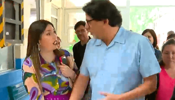 El jefe comunal, ante consultas y seguimiento de la reportera, Macarena Román, tomó el brazo de la joven e hizo que esta bajara su micrófono abruptamente, además de decirle algo que no pudo oírse debido a la falta del audio.
