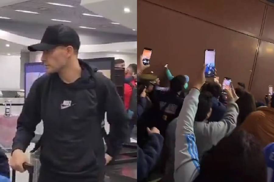 El “Príncipe” aterrizó cerca de la medianoche en suelo nacional, y tal como se aprecia en diferentes videos compartidos en redes sociales, tuvo una caótica llegada en el aeropuerto de Santiago, pues fue recibido por un gran número de hinchas del cuadro estudiantil.