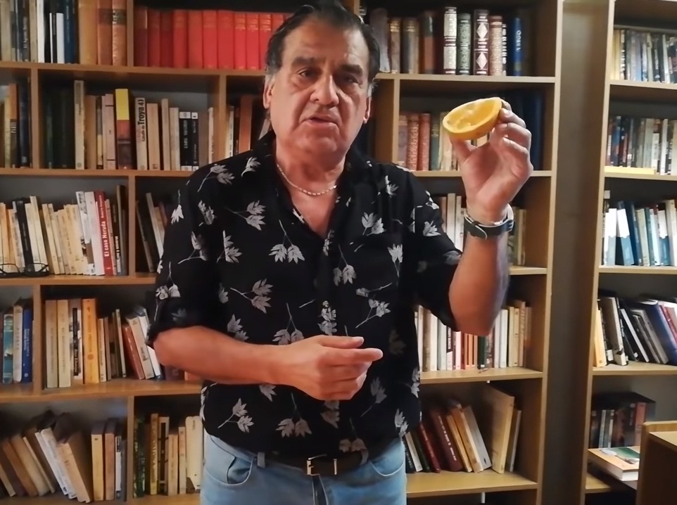 “Yo no puedo repetir lo que hizo el doctor Esparza respecto a esta naranja (…) voy a hacer algo mucho más atrevido. Altamente provocativo“, señala Martínez, mientras simula hacerle sexo oral a una naranja.