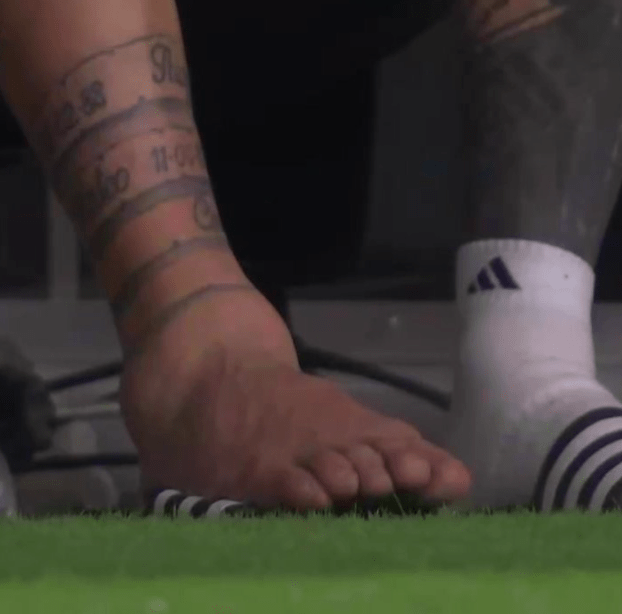 Durante el alargue, las cámaras mostraron el hinchado y prominente tobillo de Leo.