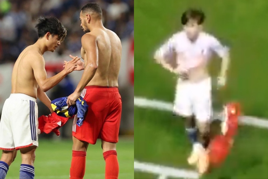 La acción ocurrió luego de que el futbolista asiático intercambiara su camiseta con el jugador del país incaico, Alexander Callens, de quien se despidió hasta con un abrazo incluido.