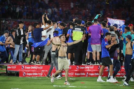 Posteriormente, luego de levantar la copa y mientras el club realizaba la tradicional vuelta olímpica, un grupo importante de hinchas azules invadieron la cancha para festejar el título. Asimismo, la situación se descontroló, con algunos fanáticos enfrentándose a los guardias, y los jugadores fueron llevados rápidamente al camarín.