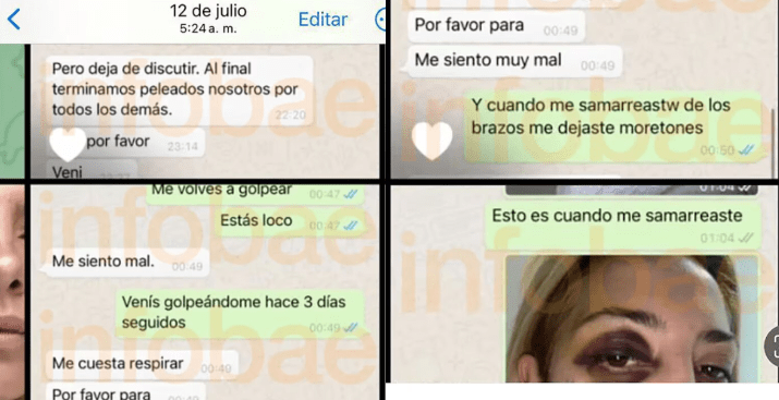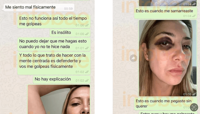 En los registros, se puede ver a Yañez con grandes moretones en su brazo y en uno de sus ojos, los que serían consecuencia de los incidentes de violencia con Fernández. Las imágenes, a las que tuvo acceso Infobae, fueron enviadas al exmandatario.