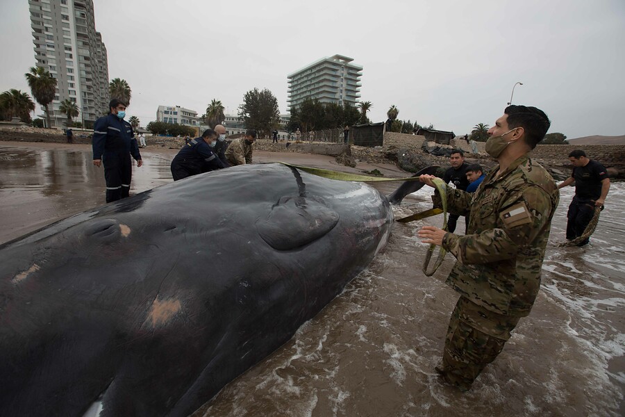 “Luego de un arduo trabajo en equipo, Autoridad Marítima de Arica, en conjunto con Sernapesca y Corpesca lograron rescatar a una ballena que se encontraba varada en playa El soldado“, informó la cuenta oficial de Armada de Chile Cuarta Zona Naval.