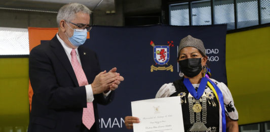 La académica remarcó que seguirá trabajando con dedicación en la Convención. “Integro la Comisión de Principios Constitucionales. Trabajo en normas en plurinacionalidad, plurilingüismo y democracia intercultural”. Durante la mañana de este lunes, la constituyente participó de un evento en la Universidad de Santiago en donde recibió la Medalla al Mérito Universitario de manos del rector Juan Manuel Zolezzi.
