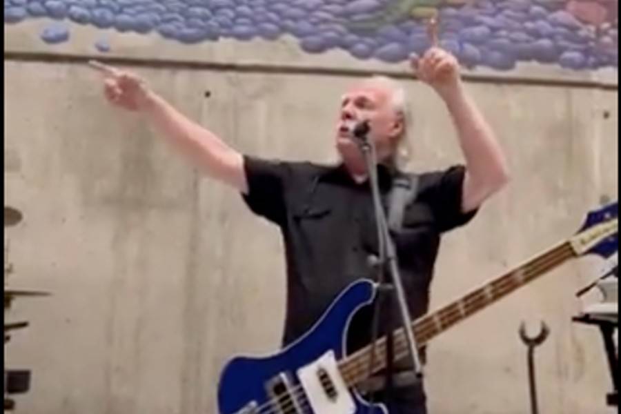 En los registros viralizados, se ve cómo Los Jaivas interpretan “Mira niñita” frente a la obra artística de autoría de René Olivares.