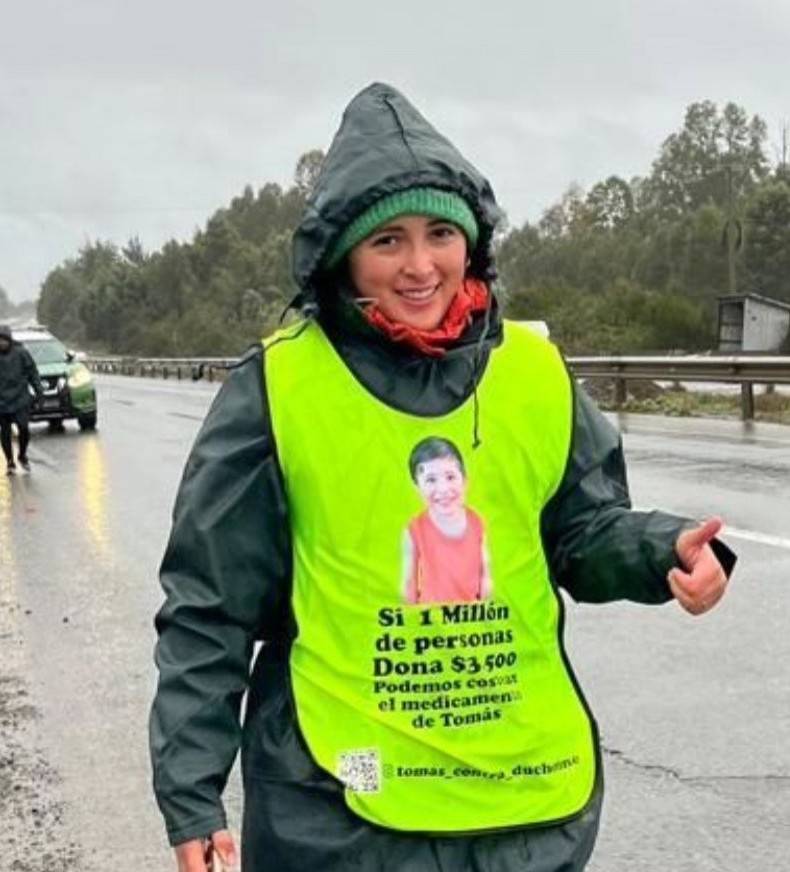 Diecisiete días caminando desde Chiloé a Santiago cumplió Camila Gómez, madre del niño Tomás Ross, quien busca reunir el dinero para adquirir un costoso medicamento para su hijo que padece distrofia muscular de Duchenne.