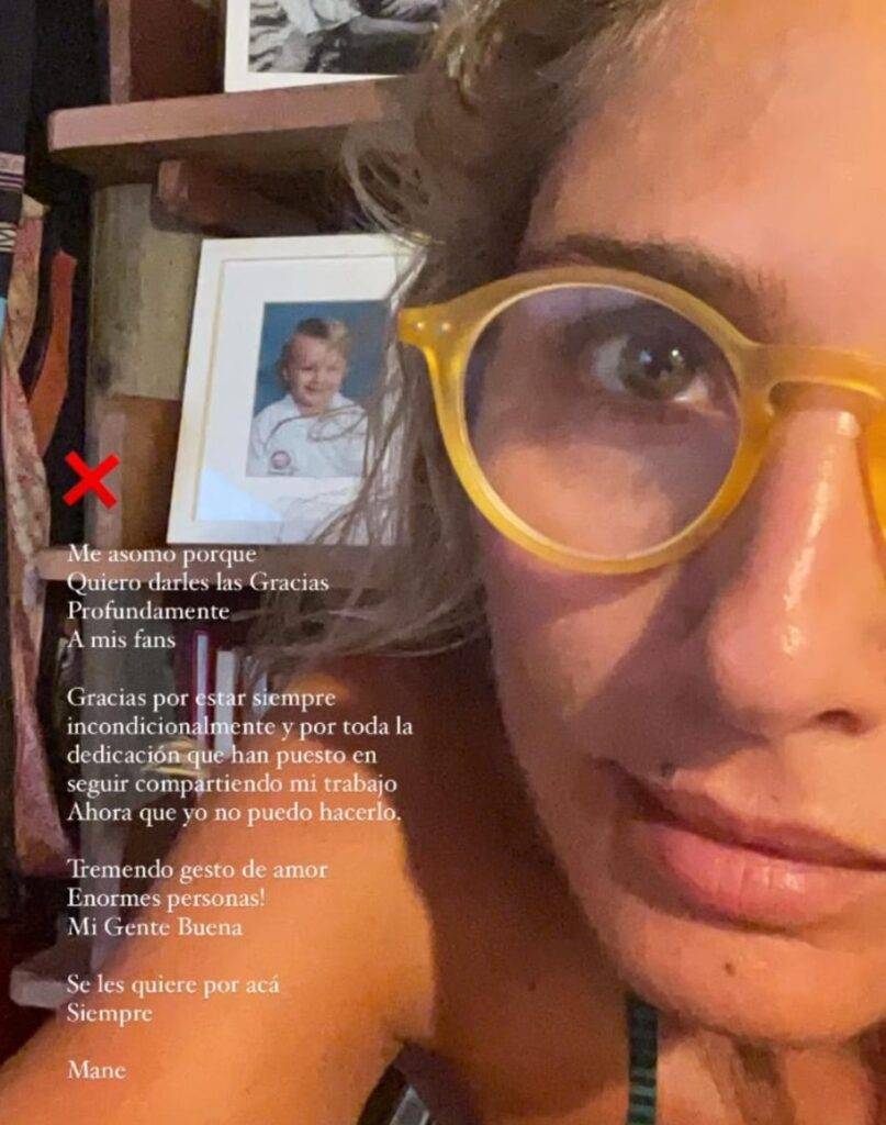 Asimismo, indicó que “gracias por estar siempre, incondicionalmente, y por toda la dedicación que han puesto en seguir compartiendo mi trabajo, ahora que yo no puedo hacerlo”.