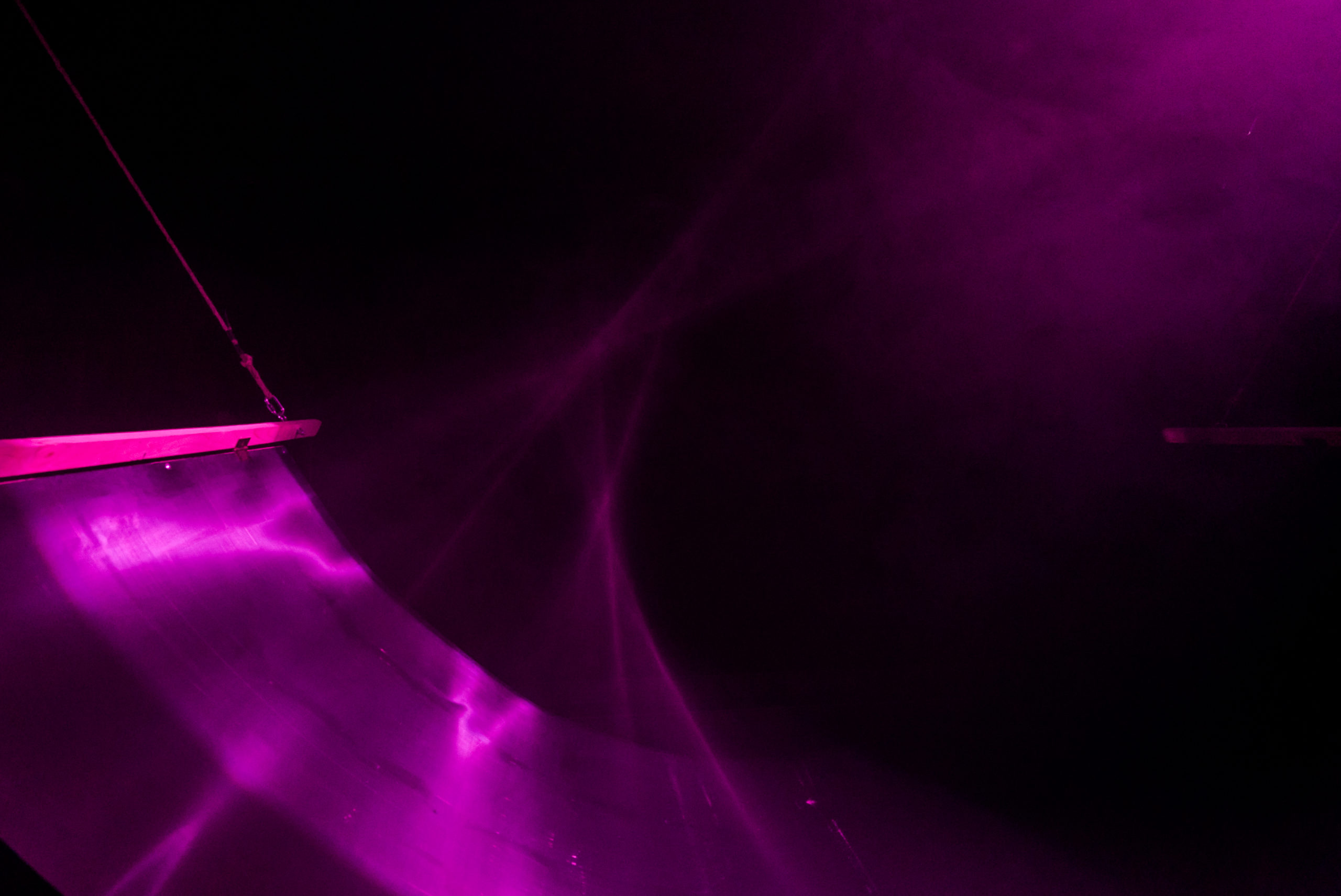 La muestra propone un recorrido por siete estaciones con aparatos de hasta siete metros de longitud, que transforman los datos de su realidad virtual y los proyectan como secuencias de luces sobre humo y espejos curvados, generando una experiencia lumínica equivalente a la información que cada usuario sube a sus redes sociales.