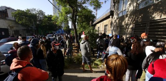 Migrantes realizan larga fila frente a Extranjería ante rumor de entrega de visa de refugio