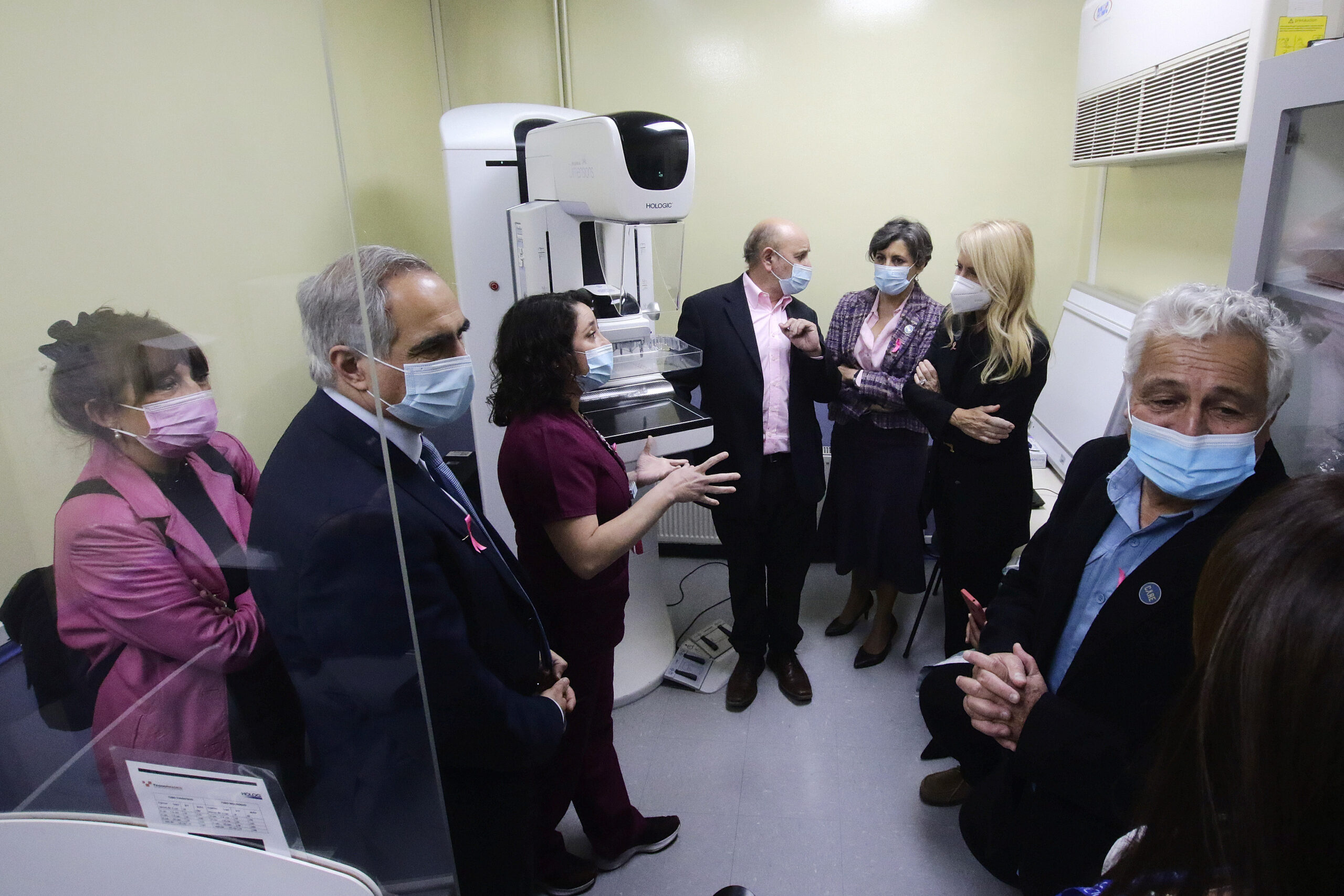 En el Centro Metropolitano de Imagenología Mamaria (CMIM) en la comuna de San Miguel, Aguilera, en compañía de la presidenta de la Fundación Care, Cecilia Bolocco, los senadores Juan Luis Castro (PS) y Francisco Chahuán (RN), el presidente de Comisión de Salud de la Cámara de Diputados, Tomás Lagomarsino (PR), y la presidenta de la Sociedad de Mastología, María Eugenia Bravo, entregó detalles acerca de esta nueva medida.