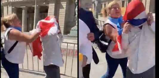 Mujer agrede a convencional Marcos Barraza: lo intentó asfixiar con una bandera