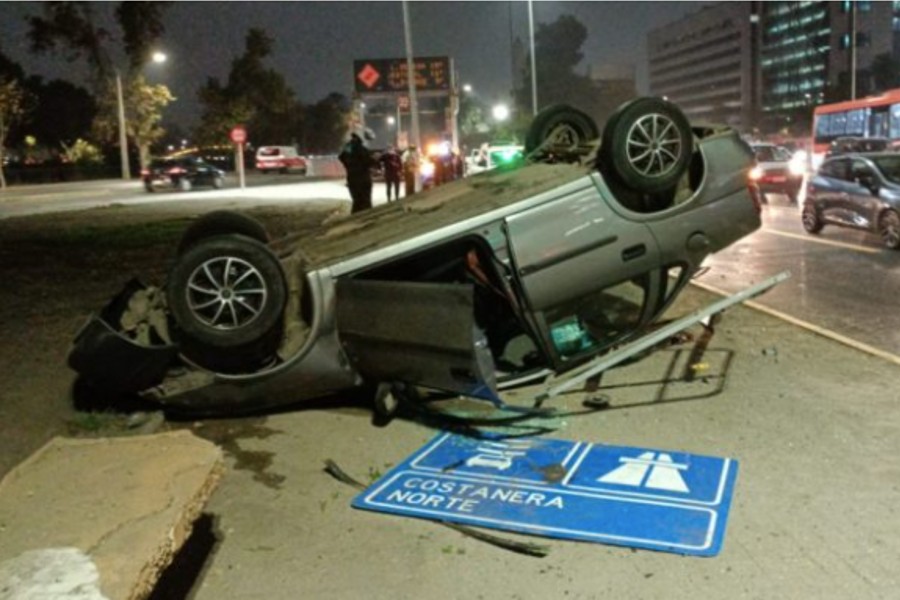 Vehículo terminó volcado en Plaza Baquedano: chofer re...