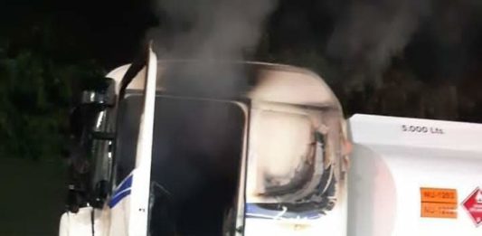 El hecho se registró en los alrededores del servicentro Flores, hasta donde llegó un grupo indeterminado de desconocidos con armas de fuego y que tras realizar algunos disparos procedieron a prender fuego a las máquinas.