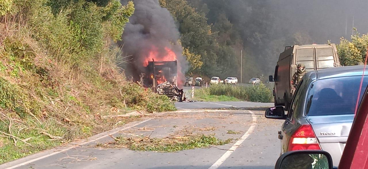 En el lugar, un grupo de ocho encapuchados habrían obligado a descender a los conductores de dos camiones, procediendo a quemarlos. Además, habrían sustraído el teléfono celular de uno de los choferes.