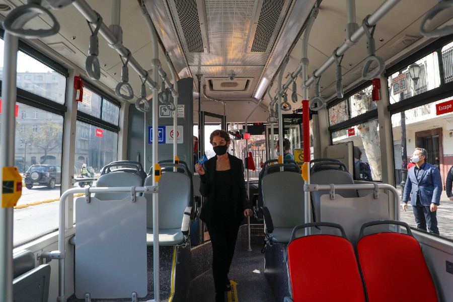 “Por primera vez en el sistema de buses del transporte público, implementaremos un piloto para reproducir a través de los parlantes internos de los buses una serie de mensajes que destacan la importancia de usar correctamente la mascarilla, el lavado de manos constantes y el uso de alcohol gel, como medidas preventivas para el contagio de Covid-19” destacó la ministra Hutt.