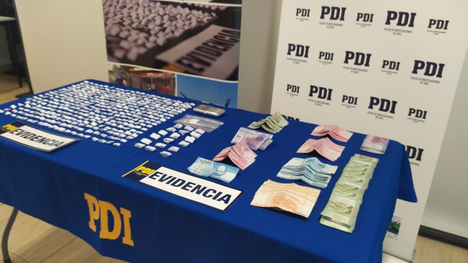 En el procedimiento, PDI incautó 1.761 dosis de cocaína base, 17,42 gramos de cannabis, 2,61 gramos de clorhidrato de cocaína, $451.000 pesos en dinero en efectivo y diversos elementos para la dosificación.