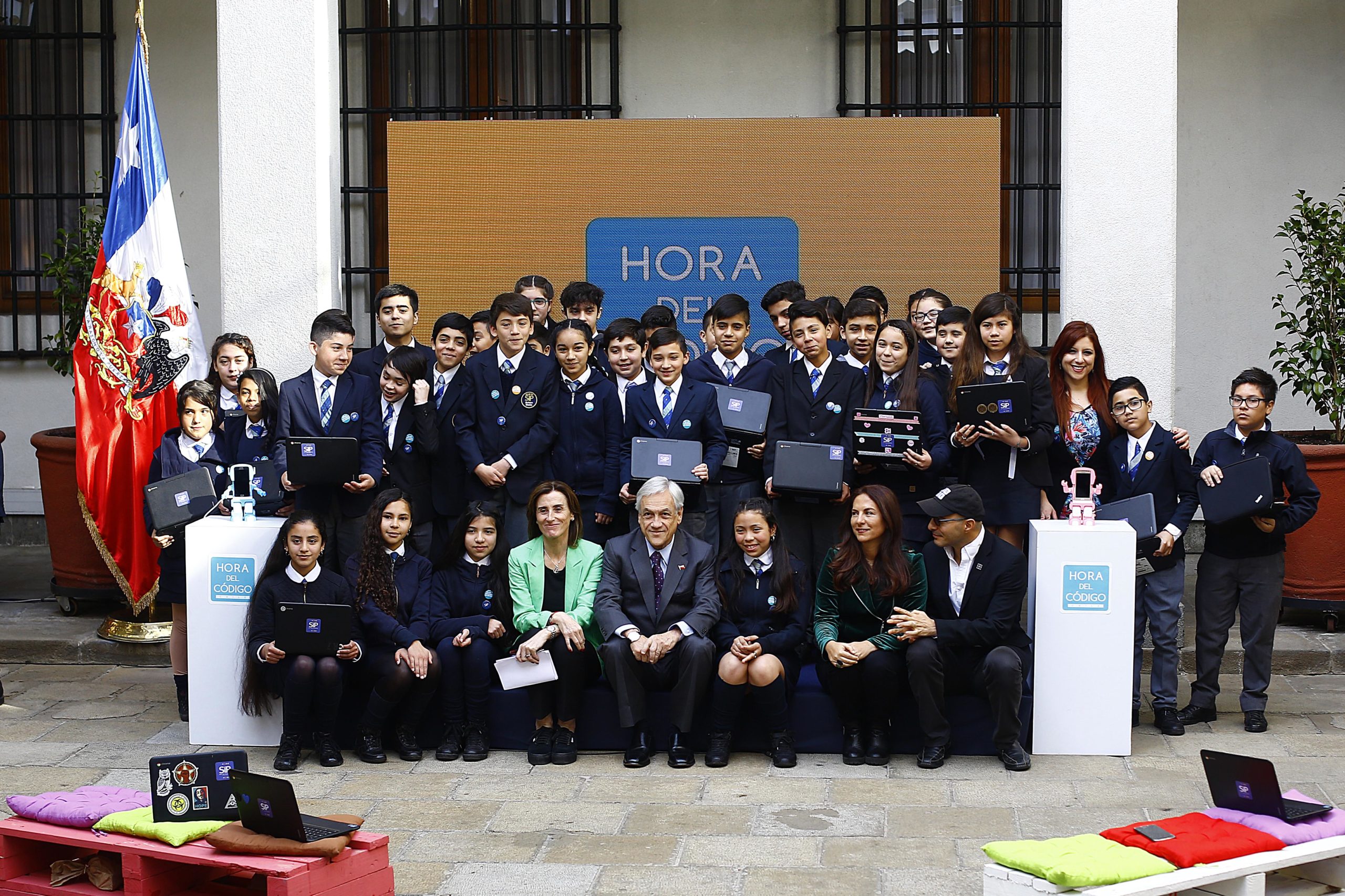 Junto con la ministra de Educación, Marcela Cubillos, en una ceremonia en La Moneda con alumnos del colegio Arturo Matte Larraín, el jefe de Estado aseguró que el Gobierno está comprometido con la programación digital, que “abre puertas a esta sociedad del conocimiento y la información, para que llegue a todos los niños de nuestro país”.