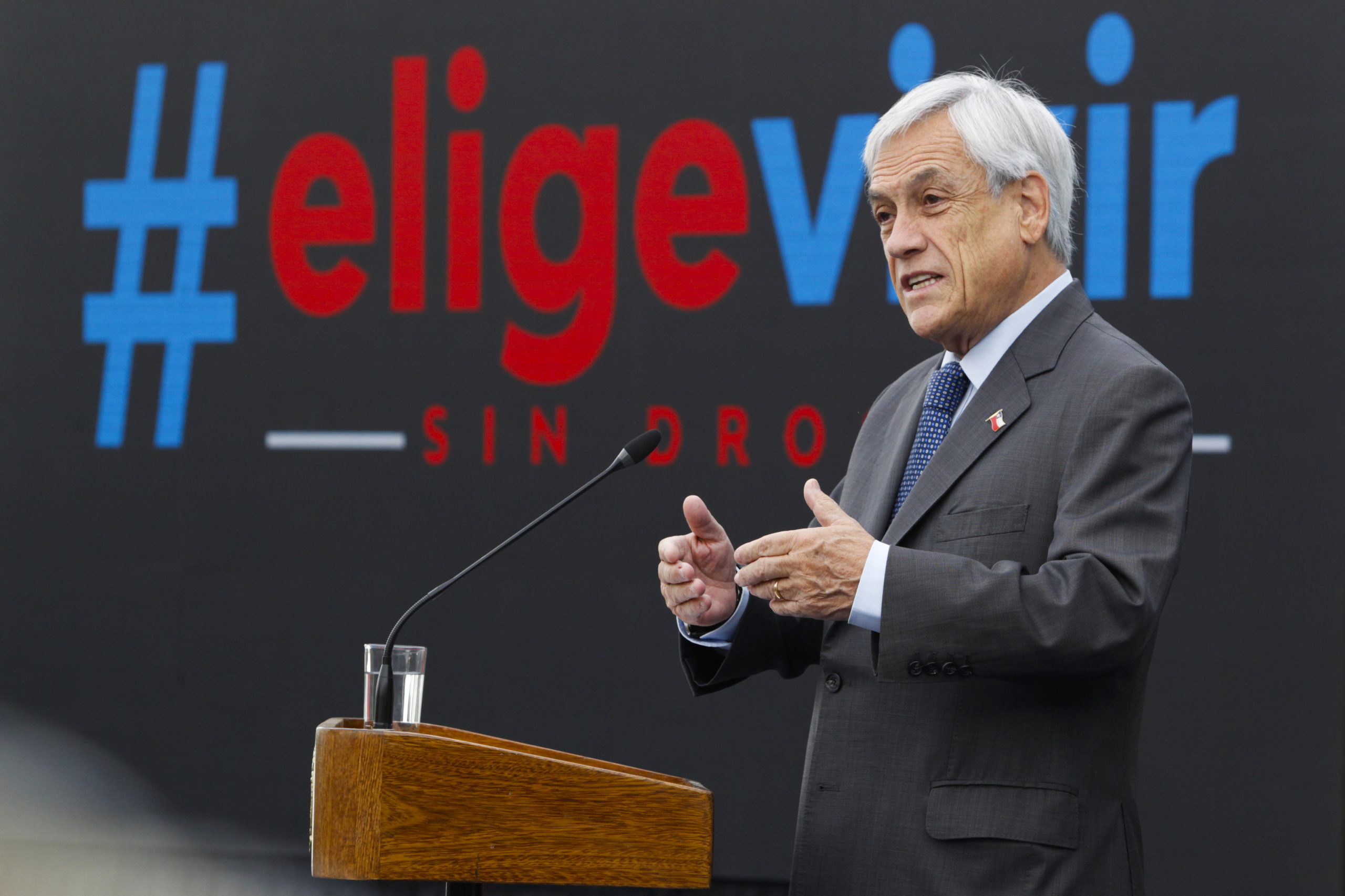 Piñera pidió en la oportunidad que todos los chilenos se unan en torno a este tema. “Tenemos que unirnos como un solo hombre y una sola mujer para evitar que nuestros niños y jóvenes, uno de cada tres de cada uno de ellos (consuman)”, tendencia que irá en aumento, indicó.