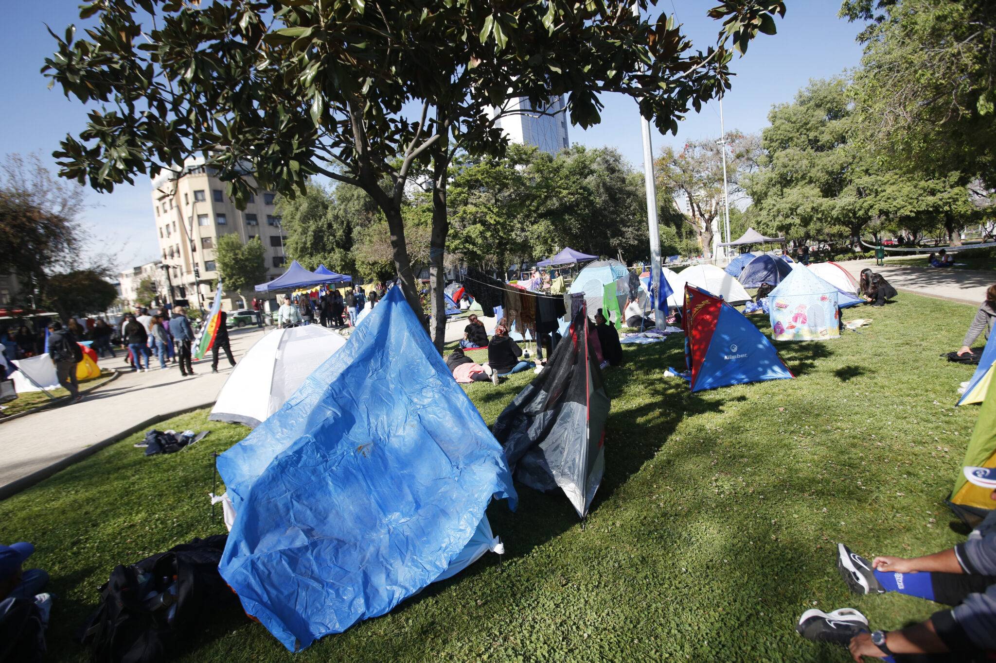 Un grupo de pobladores de Lo Hermida, en la comuna de Peñalolén, se tomó un sector del Parque Balmaceda en Providencia para exigir soluciones habitacionales. En la mañana de este jueves, los manifestantes instalaron un campamento en el sector cercano a avenida Providencia y Andrés Bello. La vocera de la agrupación, Daniela Ocaranza, explicó que … Continúa leyendo Pobladores de Lo Hermida instalaron campamento “indefinido” en Parque Balmaceda
