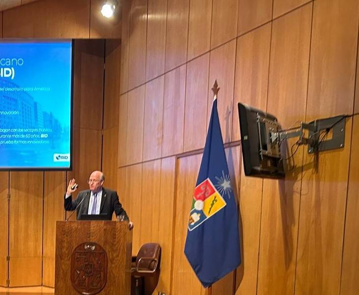 Con un aula magna llena de estudiantes y académicos, el presidente del Banco Interamericano de Desarrollo (BID), Ilan Goldfajn, presentó una conferencia donde habló de los sesenta años de colaboración entre el organismo y Chile y de cómo la región se encuentra en un punto de inflexión respecto a sus posibilidades de desarrollo.