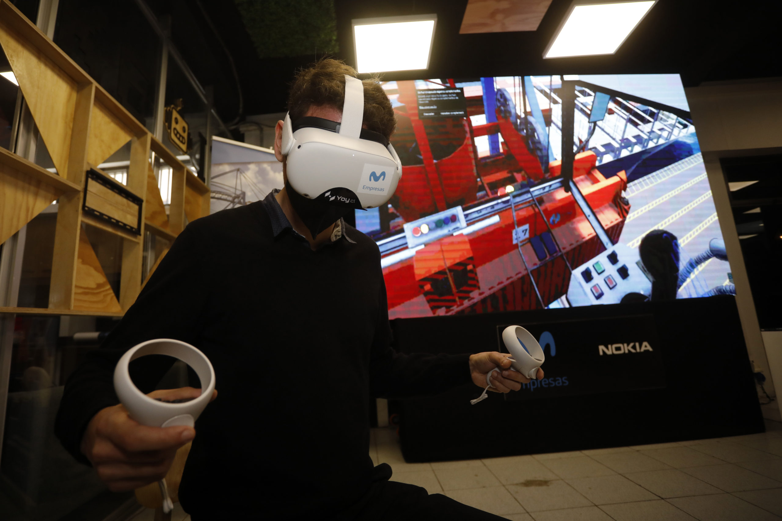 En la actividad también se realizó una demostración basada en Realidad Virtual Inmersiva conectada al espectro experimental 5G del Campus, donde se simula un embarque de carga en el Puerto de Valparaíso y virtualiza imágenes en 360° en tiempo real, para así capacitar y entrenar a operadores de grúas STS y RTG con una experiencia realista.