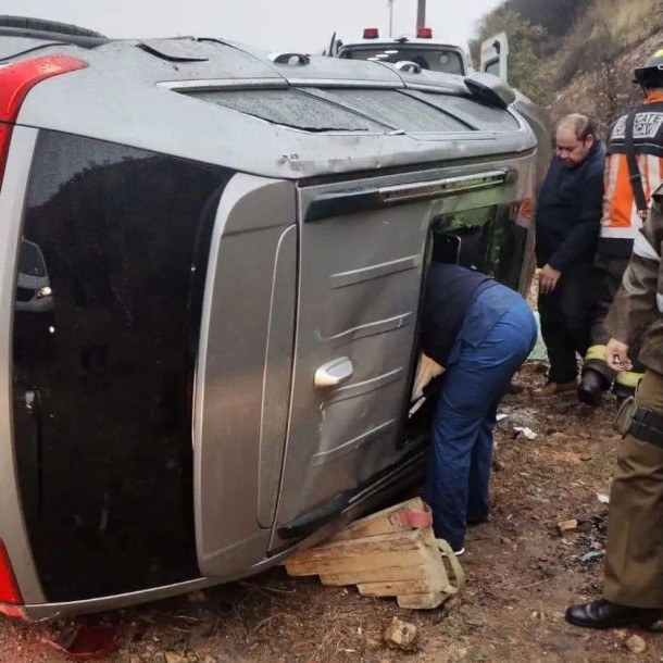 El auto correspondiente a un station wagon, de marca Jeep, dio “varias vueltas de campana” antes de impactar con la berma.