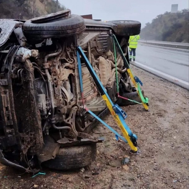 En redes sociales se han viralizado imágenes del vehículo, el cual terminó volcado mientras subía hacia el túnel Lo Prado.