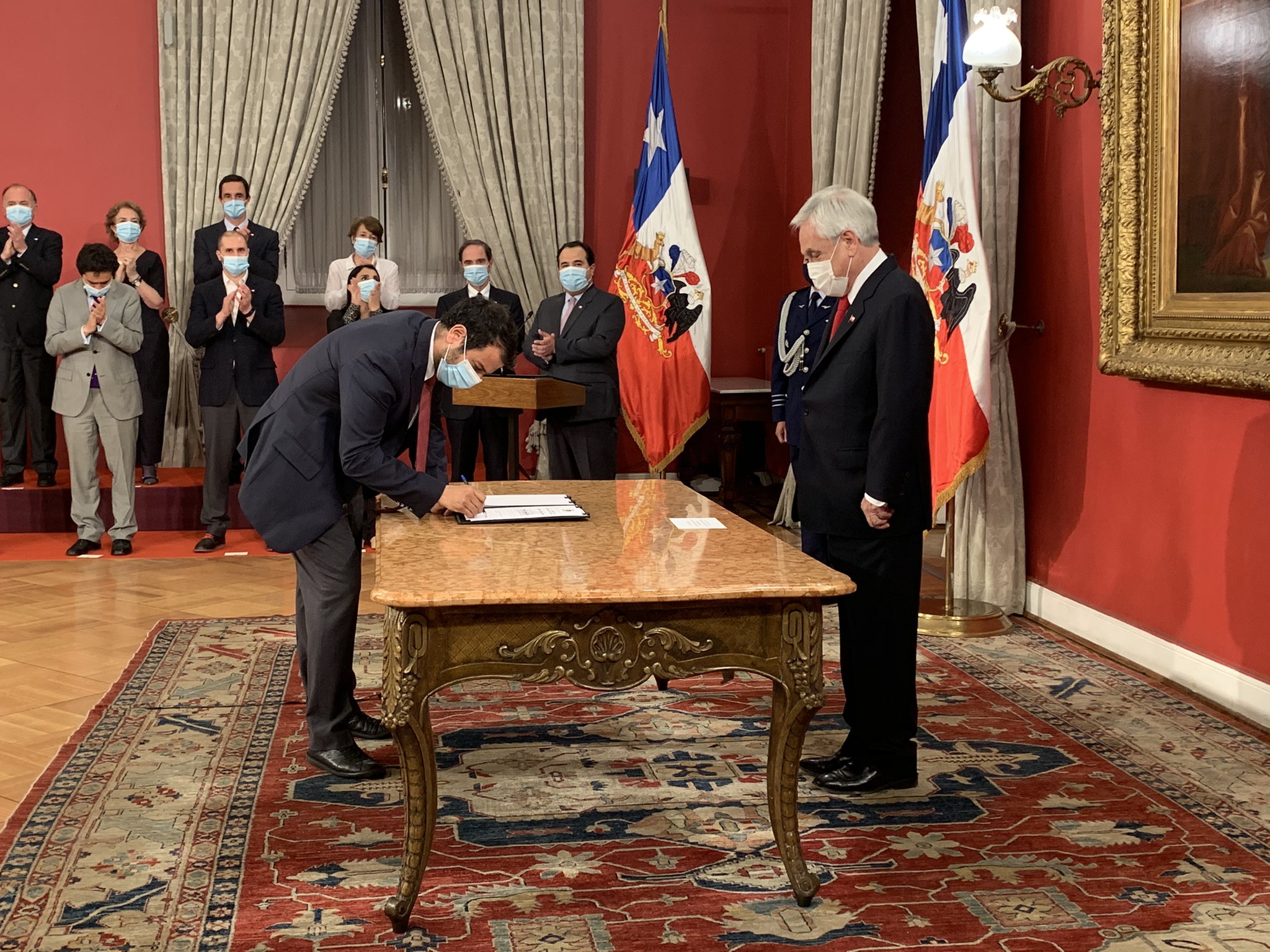 Durante la ceremonia, Piñera dio la bienvenida al nuevo ministro, señalando que “todos conocemos sus aportes y contribuciones en el ámbito municipal y del servicio público”.