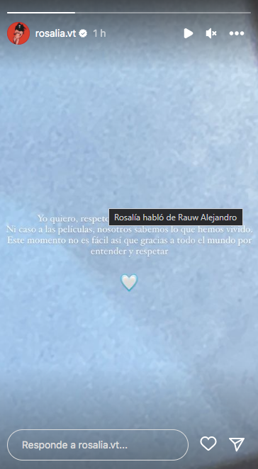 Para finalizar su descargo, Rosalía confesó que el “momento no es fácil”, pero agradeció a sus seguidores por “entender y respetar” y por las muestras de cariño recibidas.