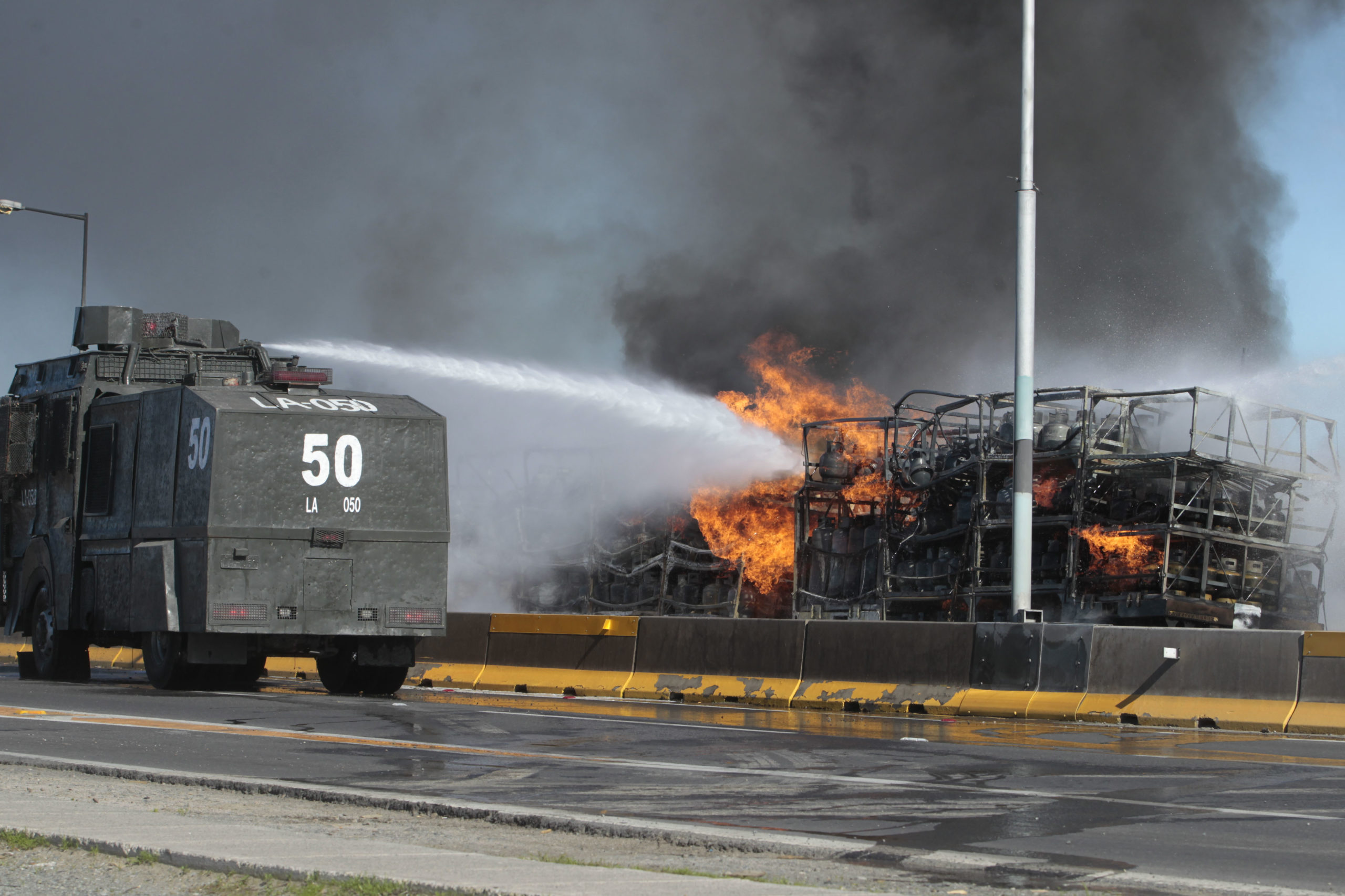 Bomberos y Carabineros aislaron el lugar para luego proceder a combatir las llamas y a enfriar los cilindros para que no siguieran explotando.