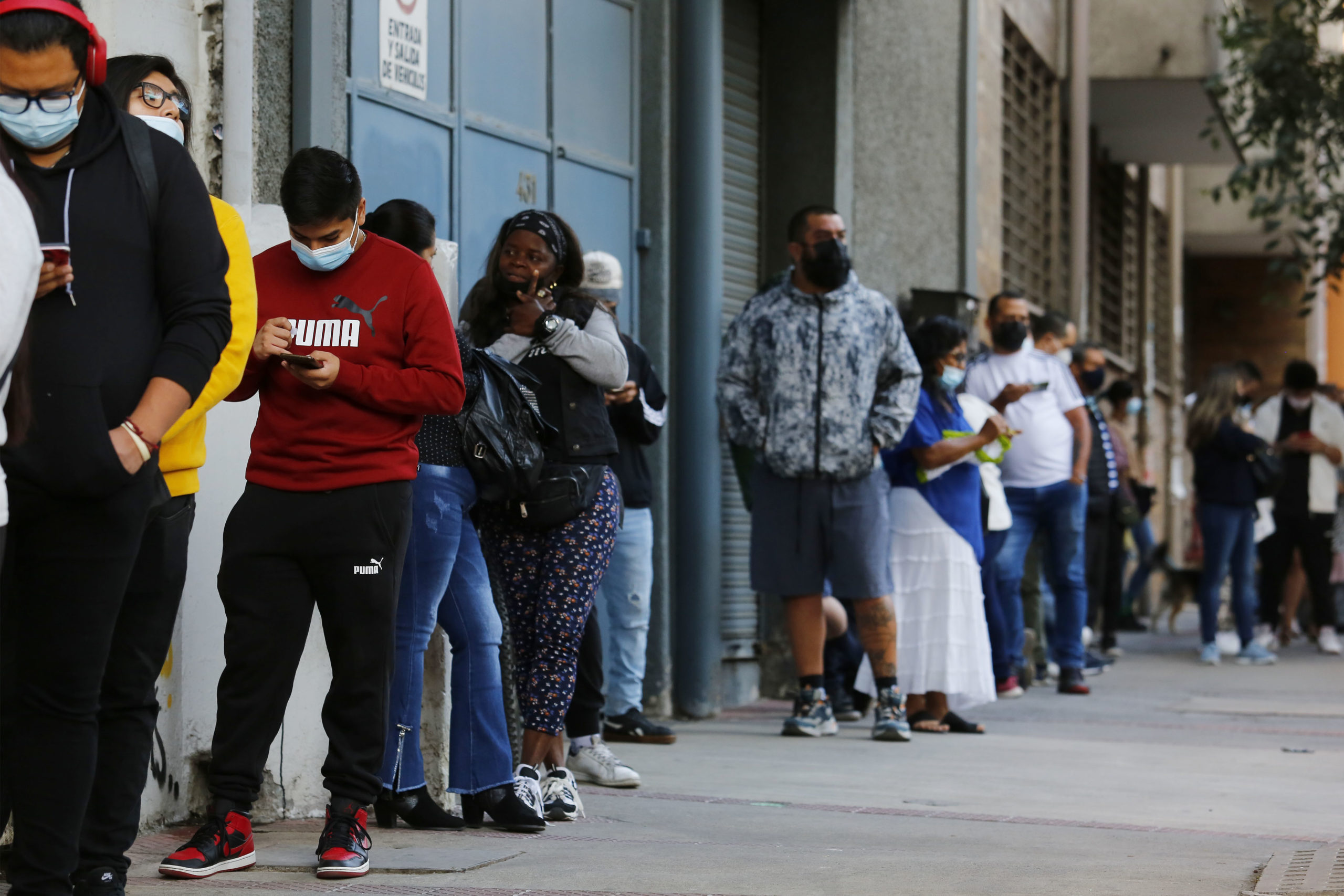 Largas filas se reportan la mañana de este viernes en distintos vacunatorios de la Región Metropolitana, fenómeno que se ha repetido esta semana frente a la nueva restricción que se aplicará al Pase de Movilidad a partir de este sábado.