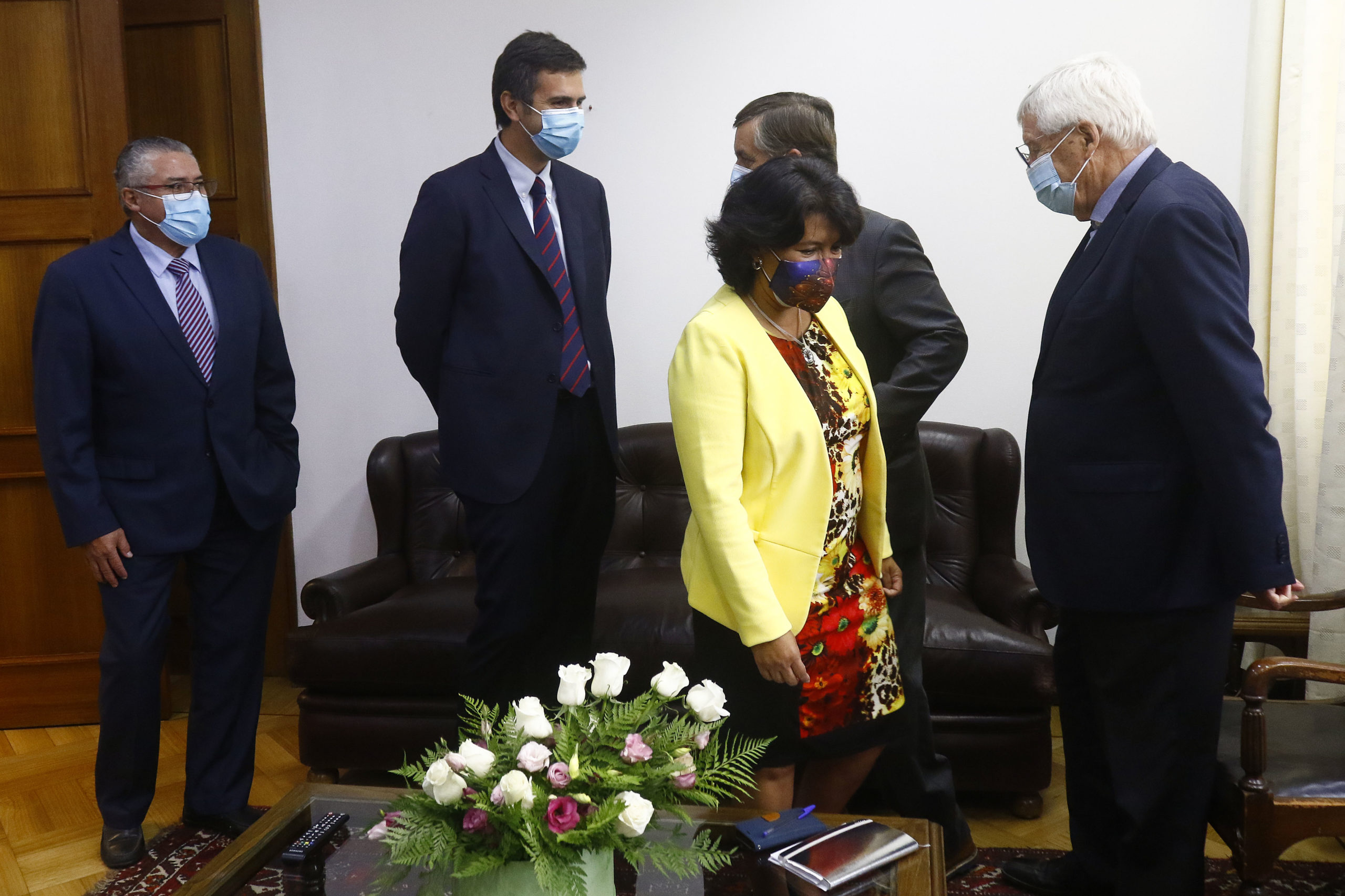 La presidenta de la Cámara Alta, Yasna Provoste, acompañada por el vicepresidente, el senador Jorge Pizarro; el presidente de la Cámara de Diputados, Diego Paulsen; el primer vicepresidente, Francisco Undurraga; y el segundo vicepresidente, Rodrigo González, expresó la intención de generar un clima de unidad y trabajo colaborativo.