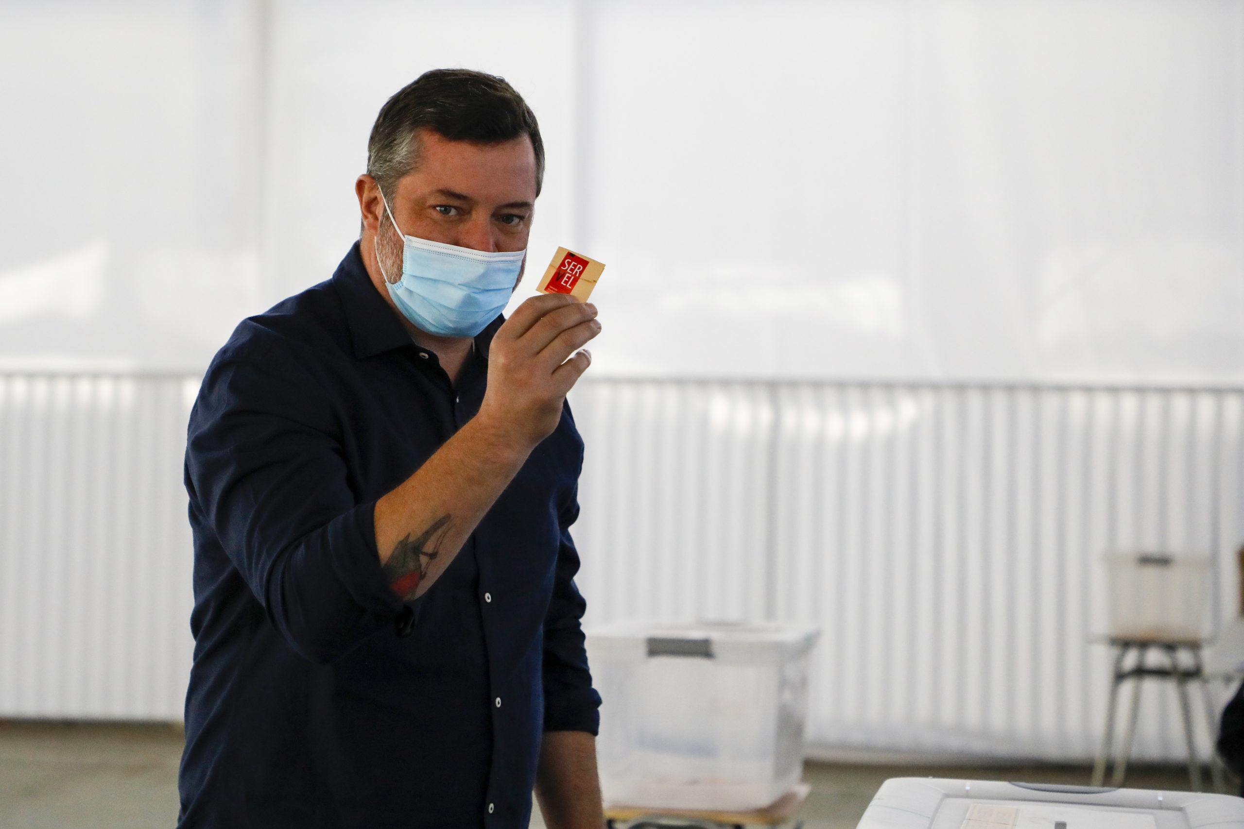 El presidenciable Independiente de Chile Vamos, Sebastián Sichel, votó este domingo en el Colegio Compañía de María de Apoquindo.