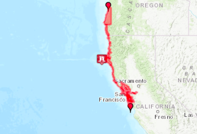 Asimismo, la advertencia también abarca el límite de California con Oregon, hasta la zona de Douglas.