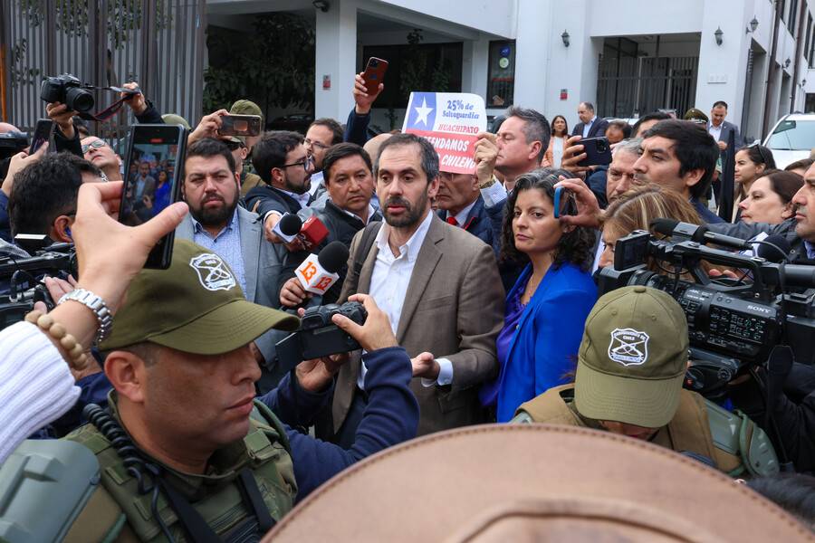 El ministro debió retirarse del lugar con escolta de Carabineros, junto a otras autoridades locales, mientras se realizaban manifestaciones en el exterior del recinto.