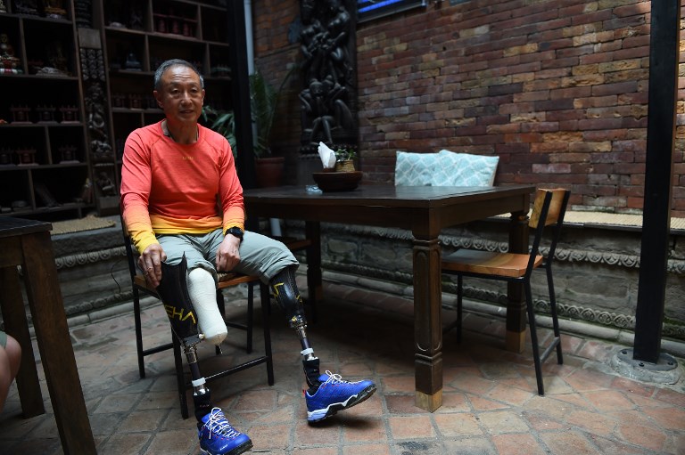 Alpinista chino de 69 años amputado de las dos piernas...