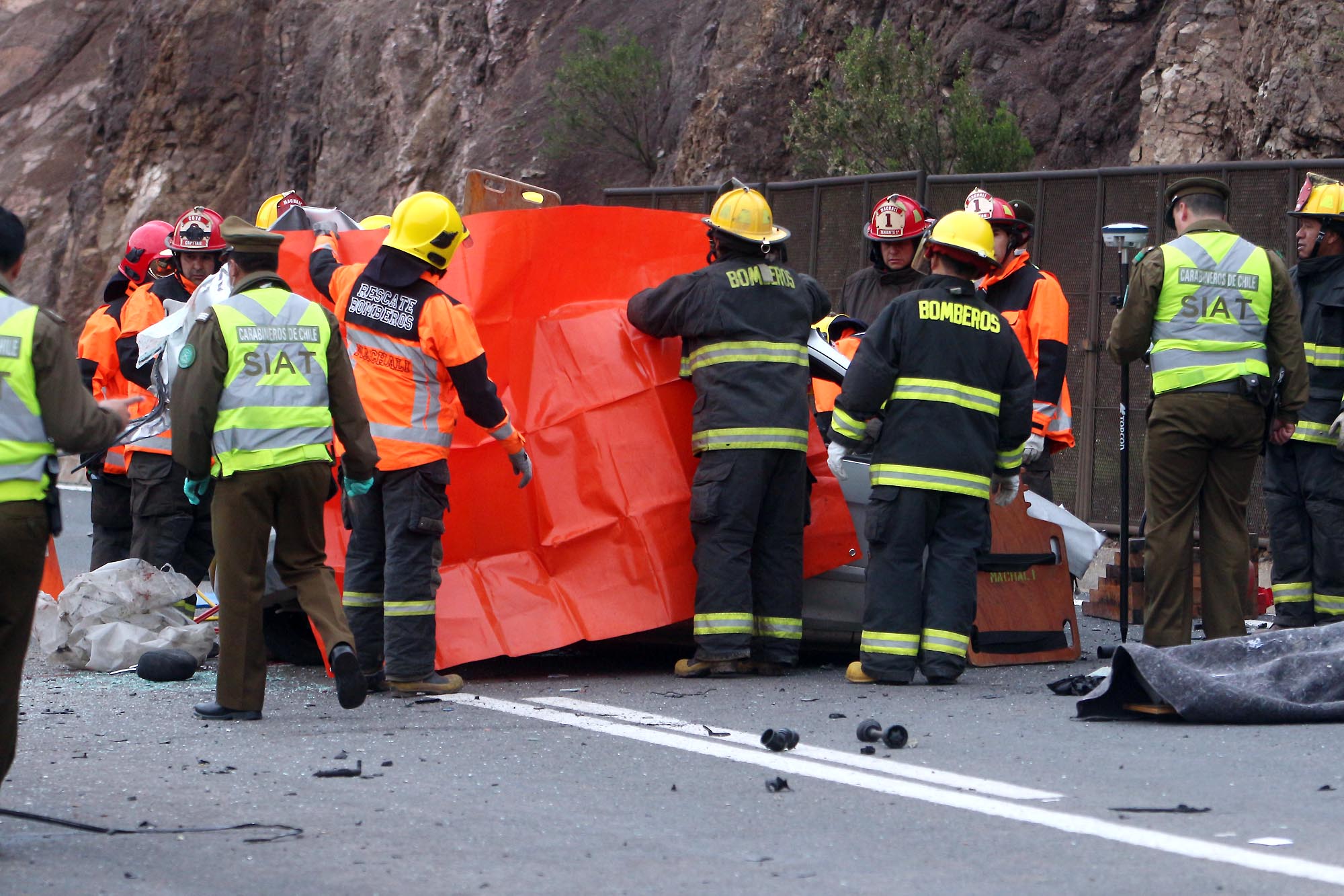 Los equipos de rescatistas debieron trabajar por varios minutos para sacar el cuerpo que quedó atrapado al interior del vehículo.