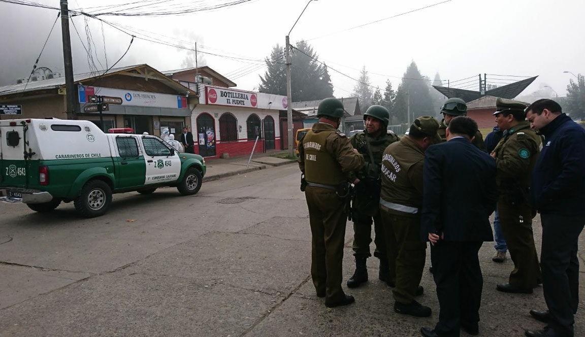 Los tiros de los asaltantes impactaron al cabo René Navarrete López, de dotación de la tenencia de Galvarino, “quien incluso herido y de manera heroica continuó la persecución de los delincuentes y junto con otros carabineros logra la detención de dos de los individuos”.