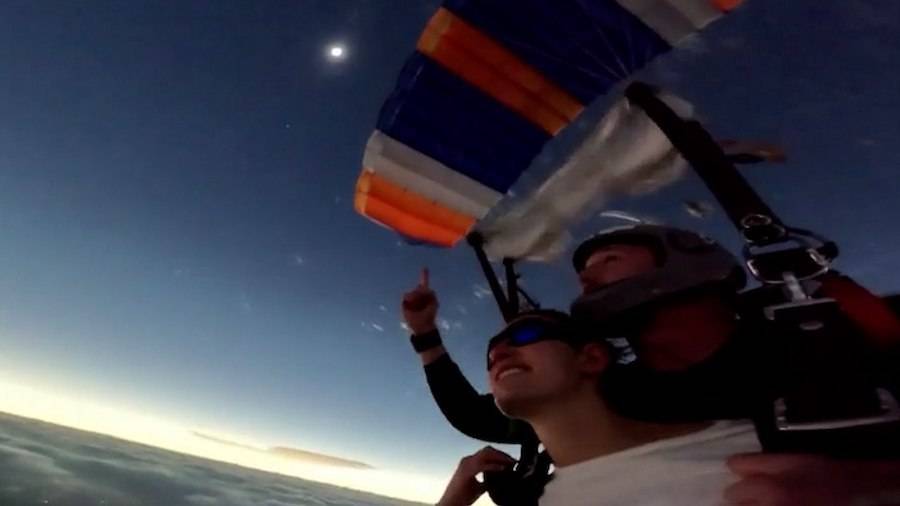 VIDEO: Así vieron el eclipse solar un grupo de paracai...