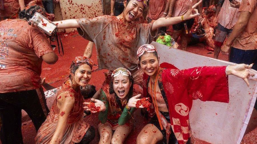 La ciudad de Buñol se tiñe de rojo una vez más. Como cada último miércoles de agosto, se celebró la Tomatina. Ha sido su edición número 78 y miles de personas disfrutaron del mundialmente conocido festejo en el que se han lanzado hasta 120.000 kilos de tomates.