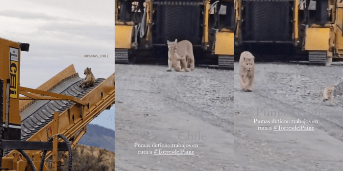 Un video muestra el momento en que la felina se aproxima al equipo, lo escala y usa su boca para extraer a su cría. Posteriormente, los dos felinos abandonan el área, regresando a su entorno natural.