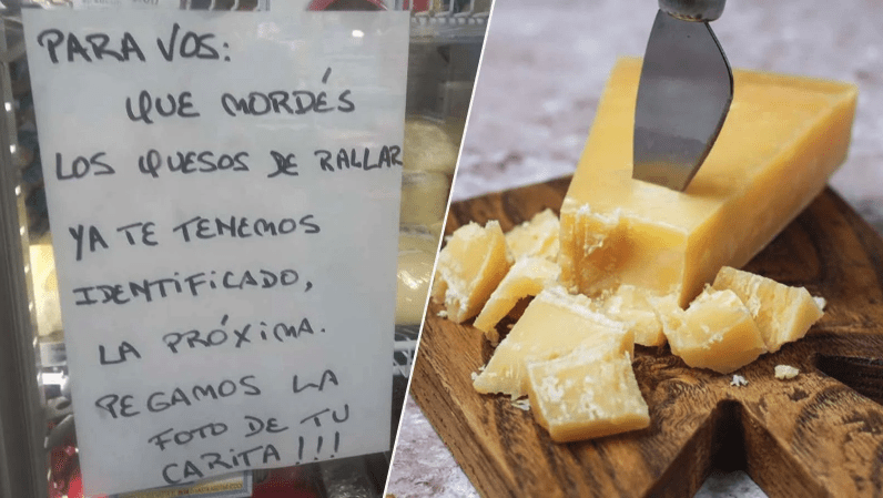 Según reportó Canal 3 Rosario, el individuo mordía quesos cuyo valor alcanzaba los 25 mil pesos argentinos, es decir, más de 18 mil pesos chilenos.