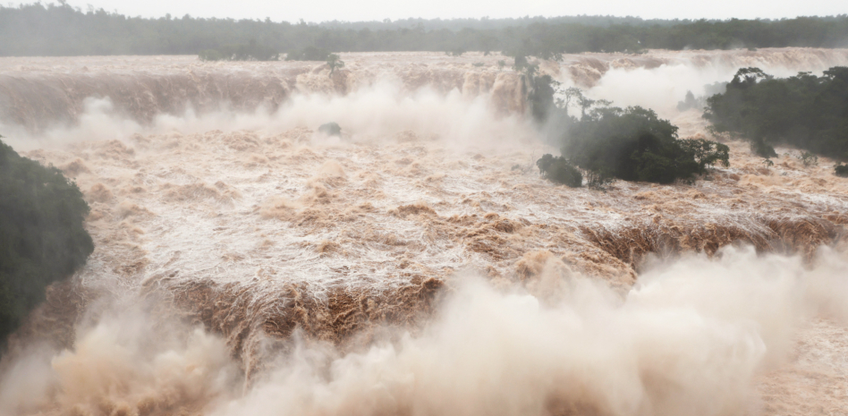Las imágenes del lugar muestran el río caudaloso y embravecido, y pasarelas cubiertas por las aguas cafés. La cifra de 24,2 millones de litros excede 16 veces el caudal de 1,5 millones de litros por segundo considerado normal, según los datos históricos.